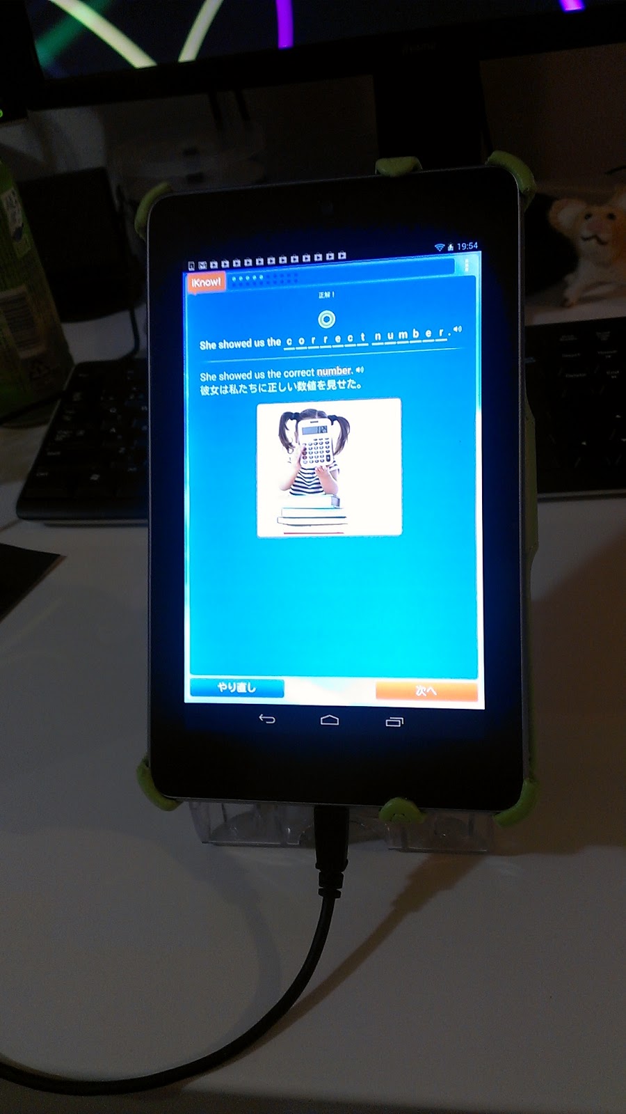 実は出来た当初からiKnowのユーザなんだよ。英会話のためのお勉強サービス。当時は無料だったけど、今は有料。1年以上ブランクがあったので再開したかったから、プレミアう会員に登録し、スマートフォンで勉強してた。